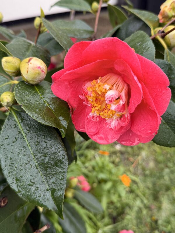 Hardy and reliable in Irish and UK gardens, ‘Dr King’ prefers a sheltered position with dappled light and protection from harsh winds and early morning sun (which can damage frost-touched buds). With a little care, it will reward you with years of vibrant colour and evergreen beauty.