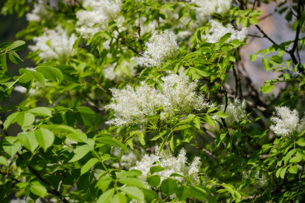 Fraxiuns ornus or ‘Manna Ash’ is a medium sized deciduous tree with beautiful Autumn colours. Buds arrive in spring with an attractive purplish hue, which open into finely serrated leaves . A favourite with pollinators, it produces creamy white flowers on panicles between May and June and clusters of winged nuts later in the year.