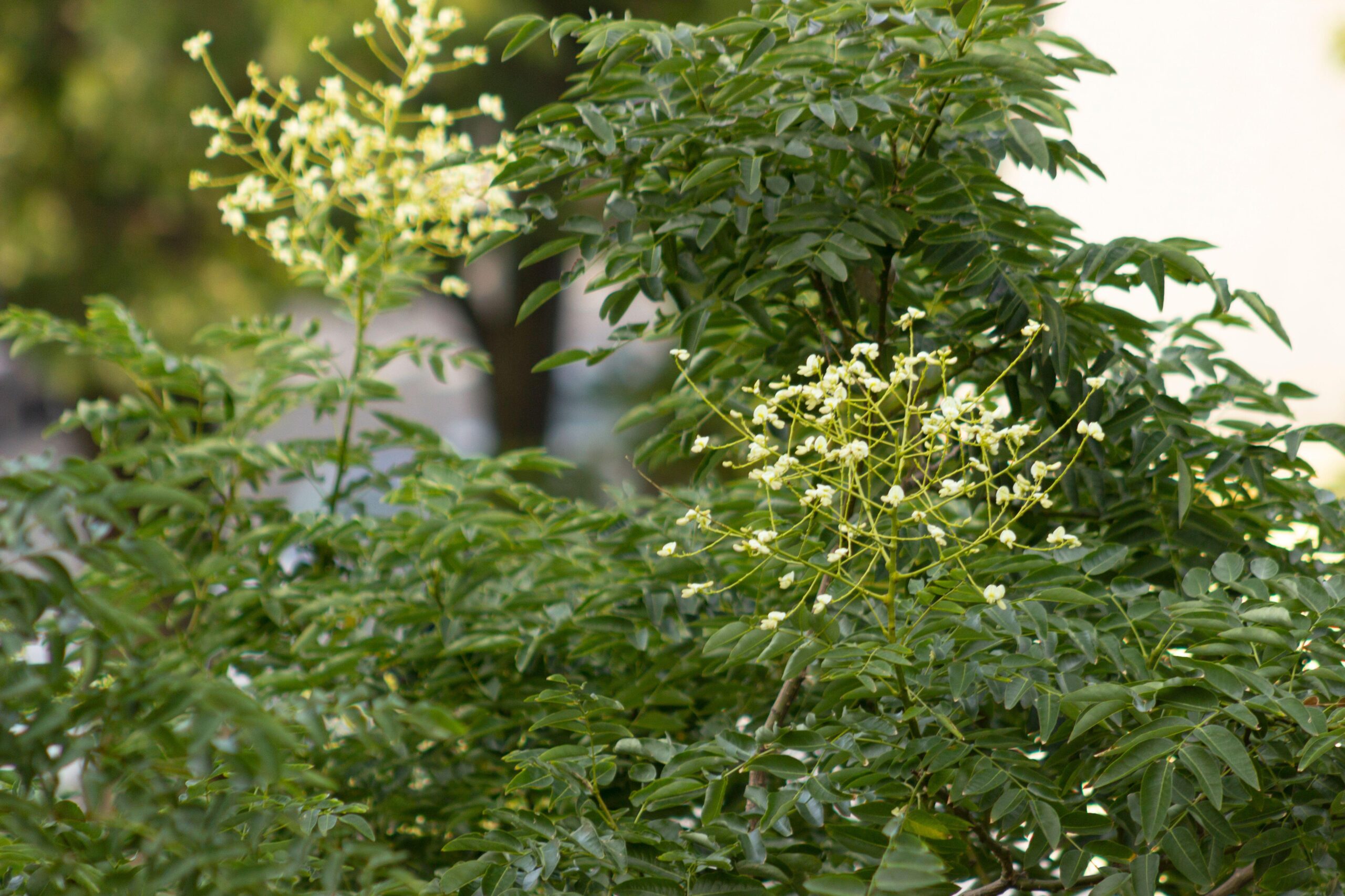 This tree is valued for its ornamental appeal and its ability to attract pollinators with its late-summer clusters of creamy-white flowers. It thrives in well-drained soil and prefers a sunny location sheltered from strong winds. Styphnolobium japonicum ‘Flavameus’ requires minimal care, needing occasional pruning to maintain its shape and remove damaged branches. Young trees benefit from regular watering during dry spells, while mature specimens are drought-tolerant. Its unique golden foliage and elegant form make it a standout choice for gardens, parks, and urban spaces